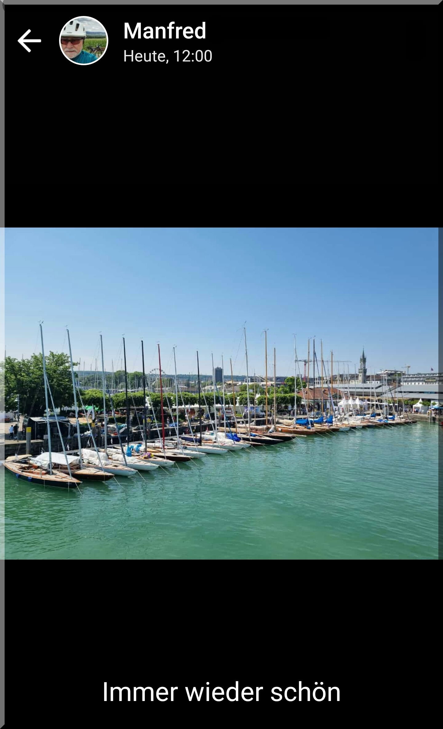 Angela & Manfred schicken mir aus Konstanz Grüße von der Bodensee-Woche – das treibt mir fast die Tränen in die Augen.