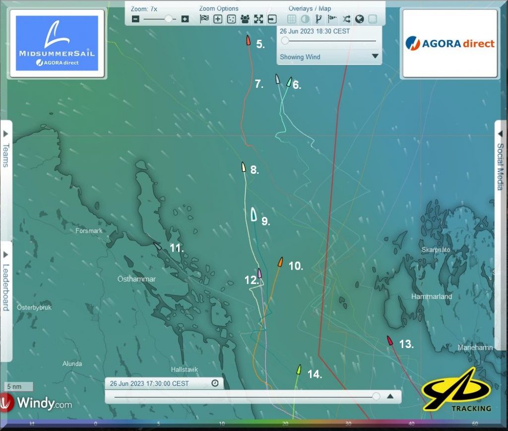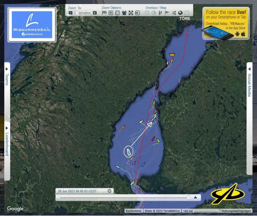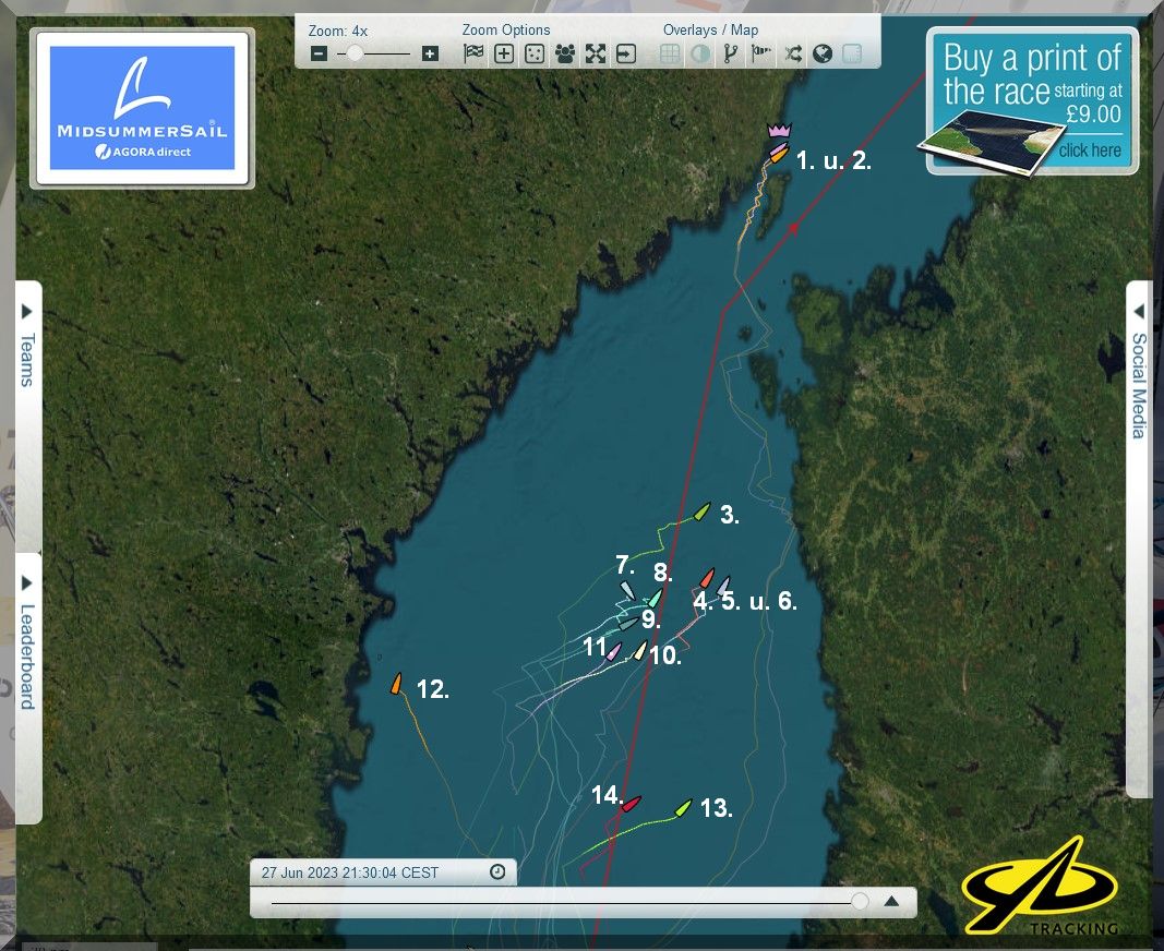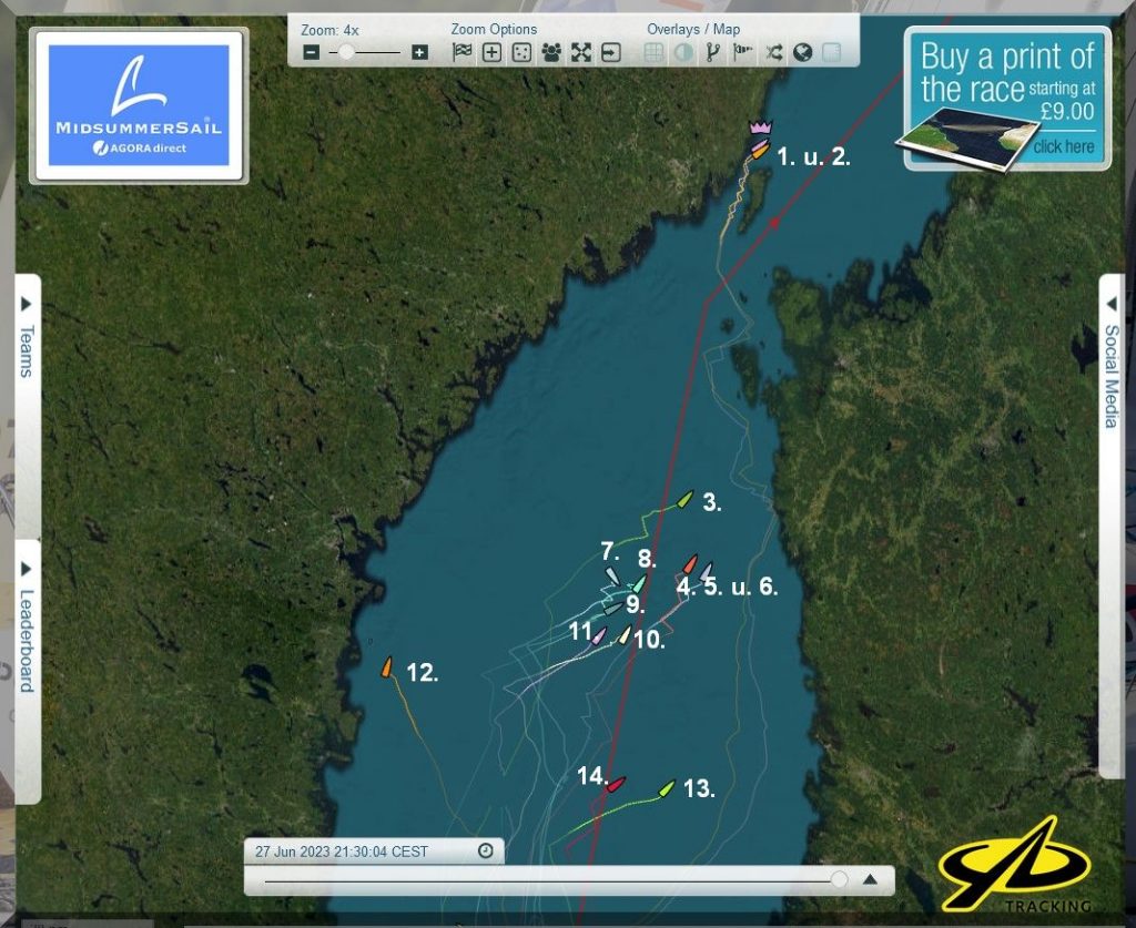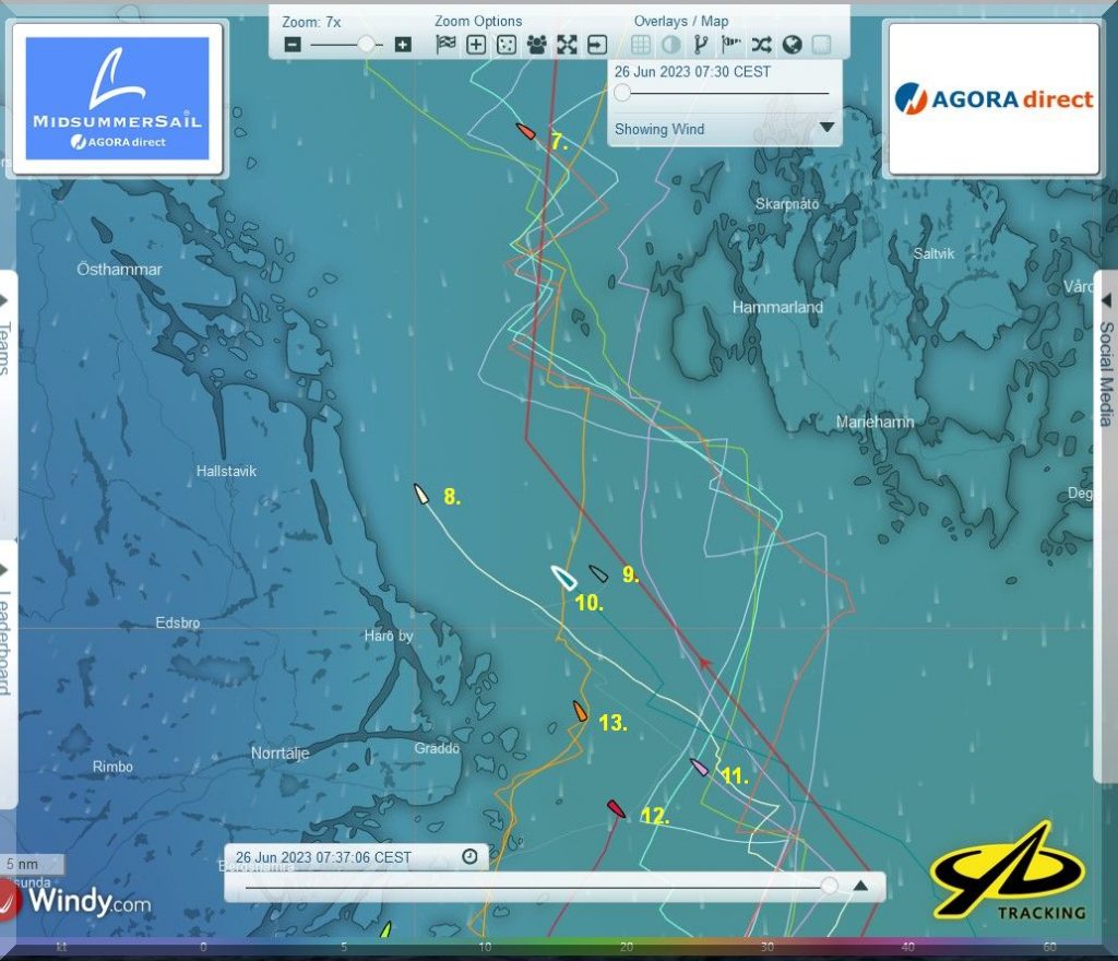 Gemessen an der Zieltonne in Töre, liegen die 3 Boote ja noch dicht beieinander.