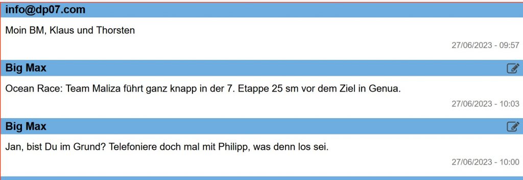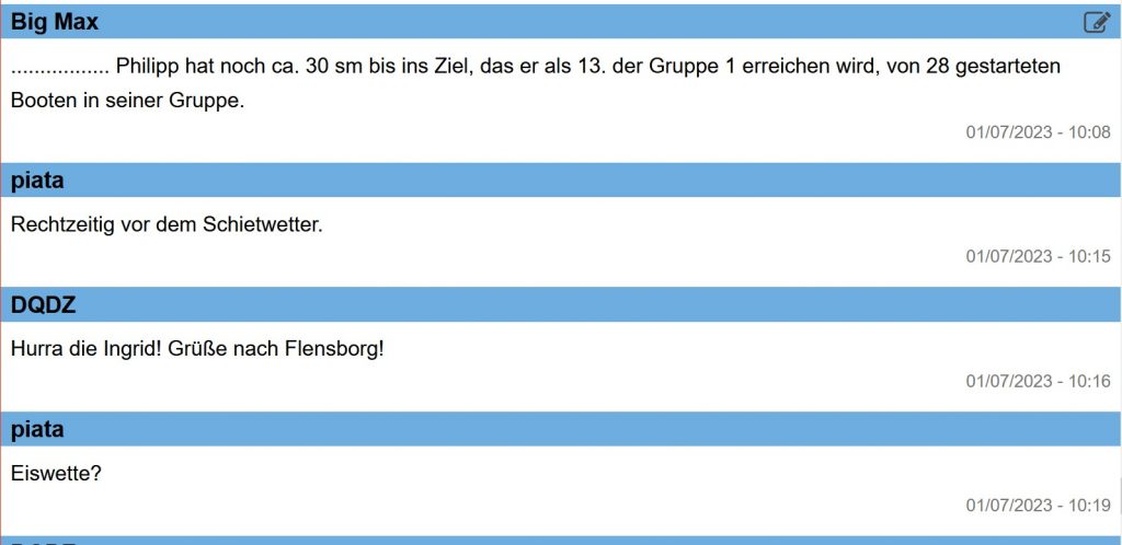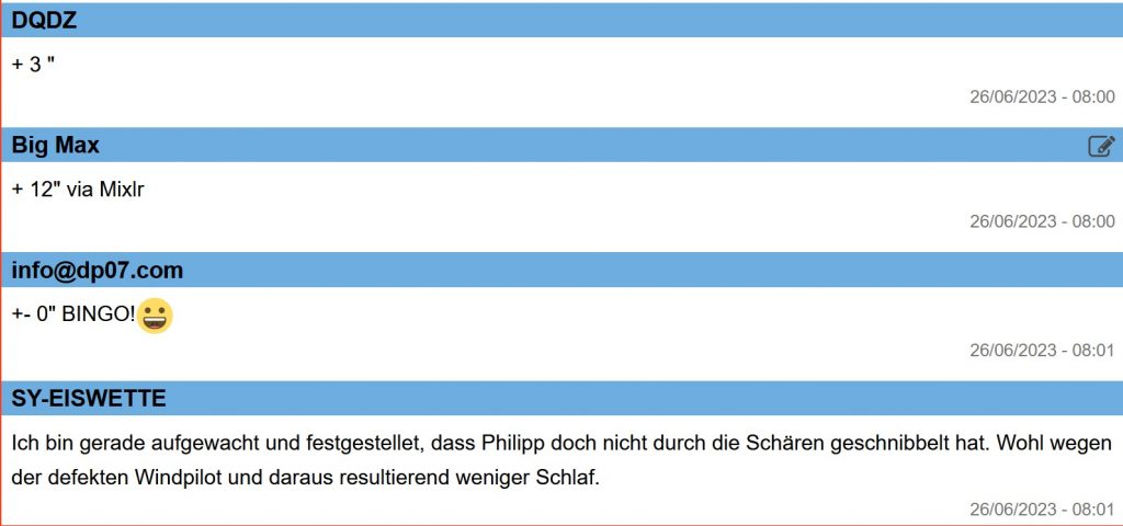 10:50 Uhr – Jan ruft mich aus dem Auto an und berichtet über sein Telefonat mit Philipp. Philipp ist in eine fürchterliche Flaute geraten und seine unmittelbaren Mitbewerber zogen weiter draußen an ihm vorbei.