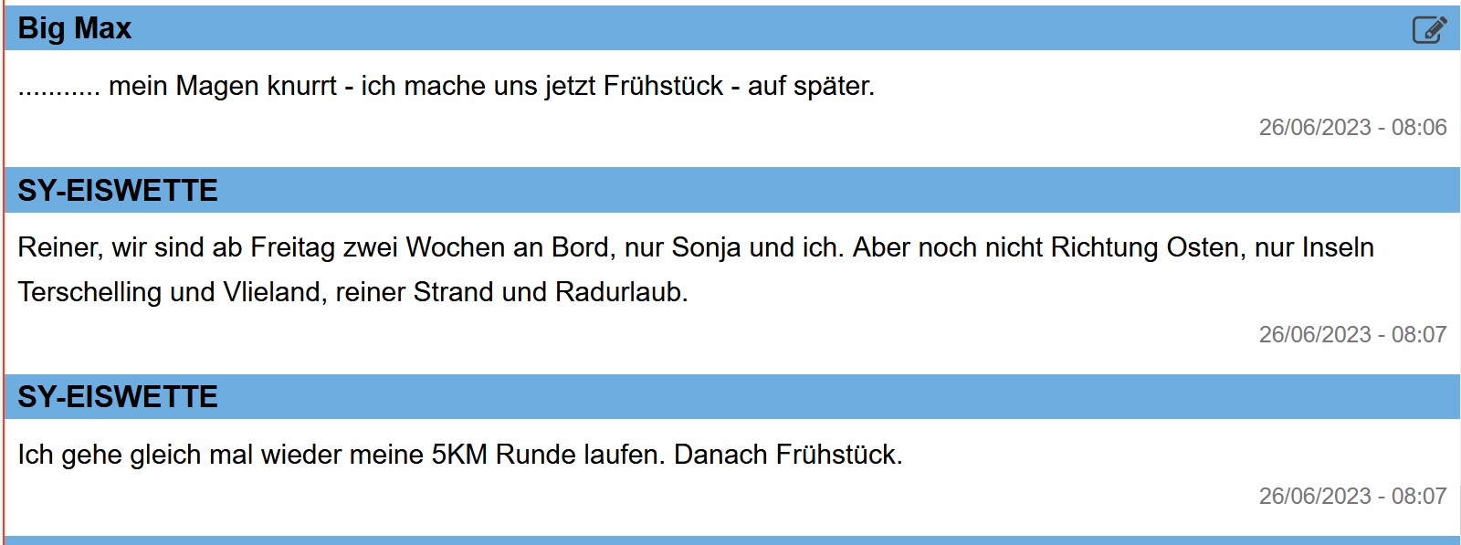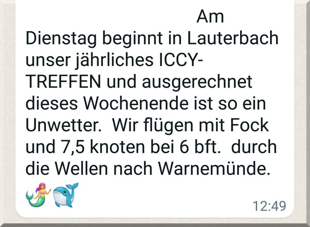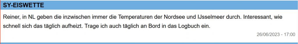 14 Uhr: SY EISWETTE sendet Signale.