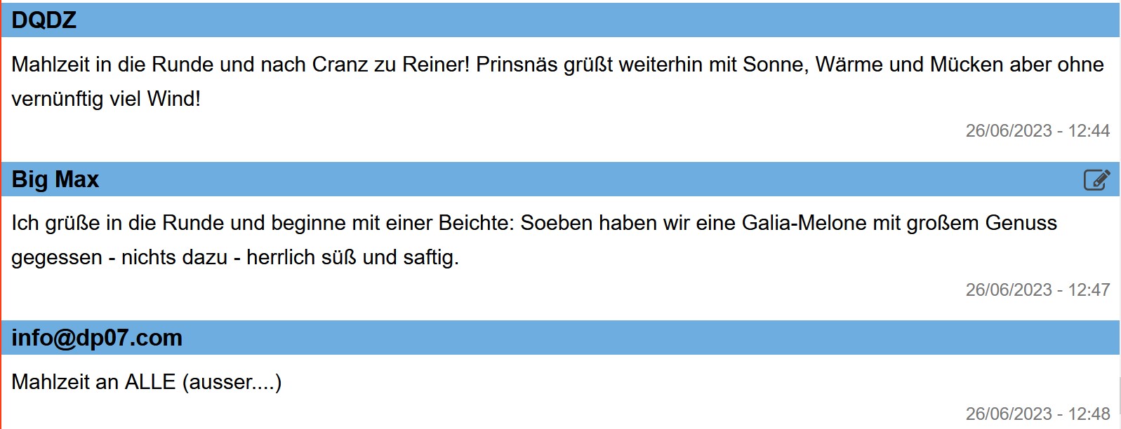 12:30 Uhr – Als Zwischenmahlzeit gab es soeben pro Person eine halbe saftige Galia-Melone aus Israel: