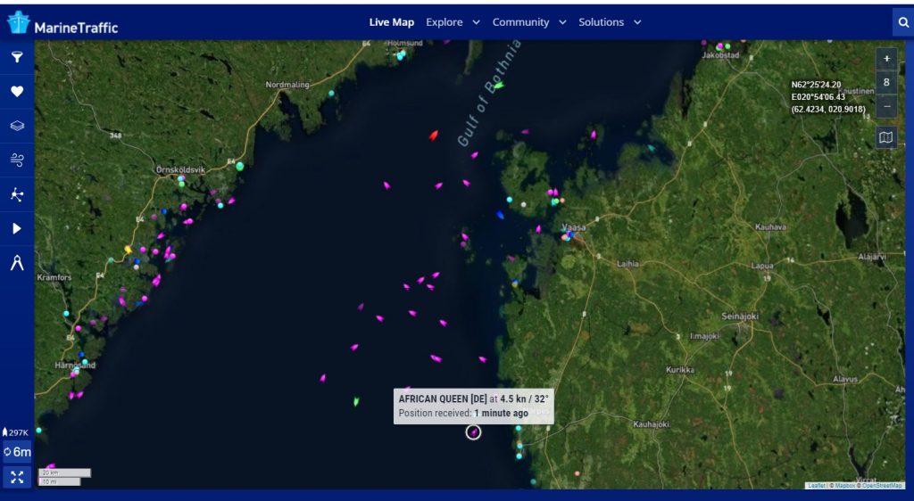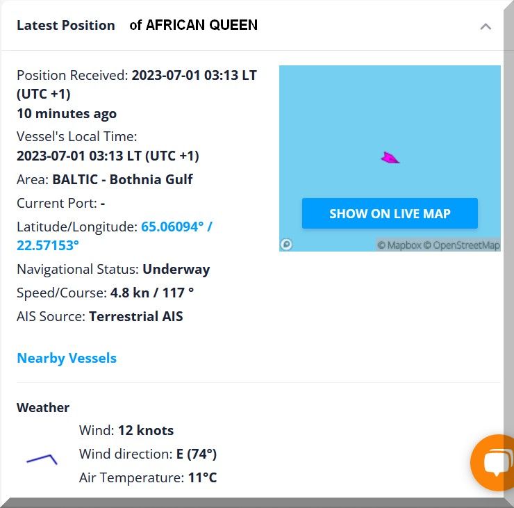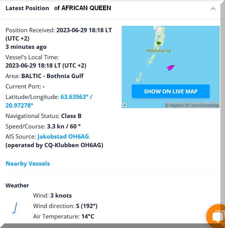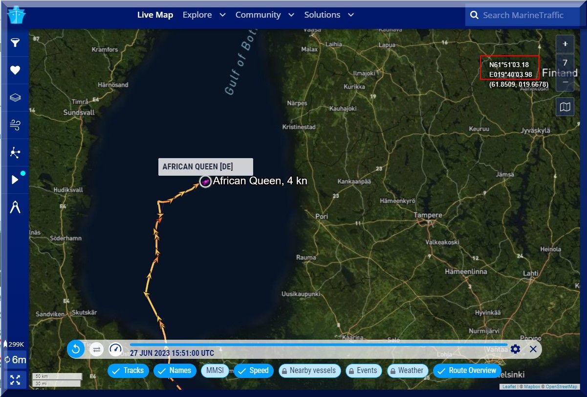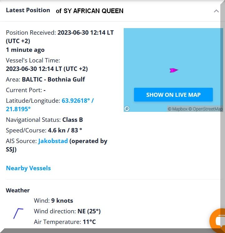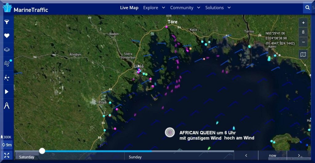 07:00 / 07:30 Uhr – Warum sendet die AFRICAN QUEEN kein Tracker-Signal? Letztmalig um 06:10 Uhr.