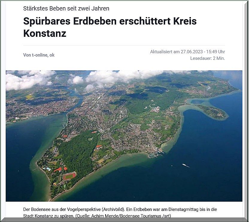 Ein deutlich spürbares Erdbeben hat am Dienstagmittag Teile des Landkreises Konstanz getroffen. Das geht aus einer Mitteilung von „erdbebennews“ hervor. Das Beben hatte Angaben des Schweizerischen Erdbebendienstes (SED) zufolge eine Stärke von 3.1.