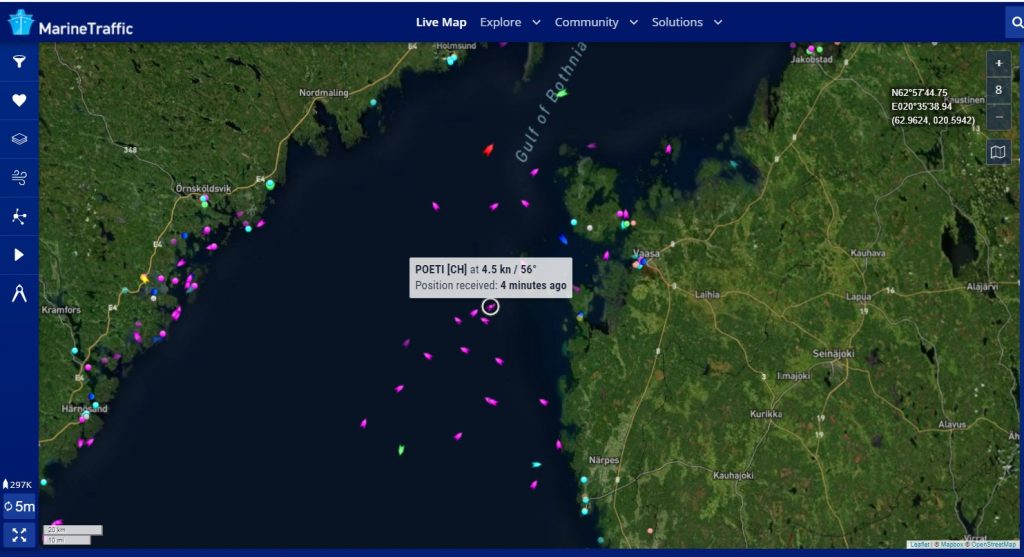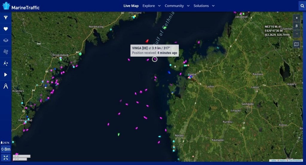 Es ist sehr mühsam, die Positionen alle mit MarineTraffic zu identifizieren.