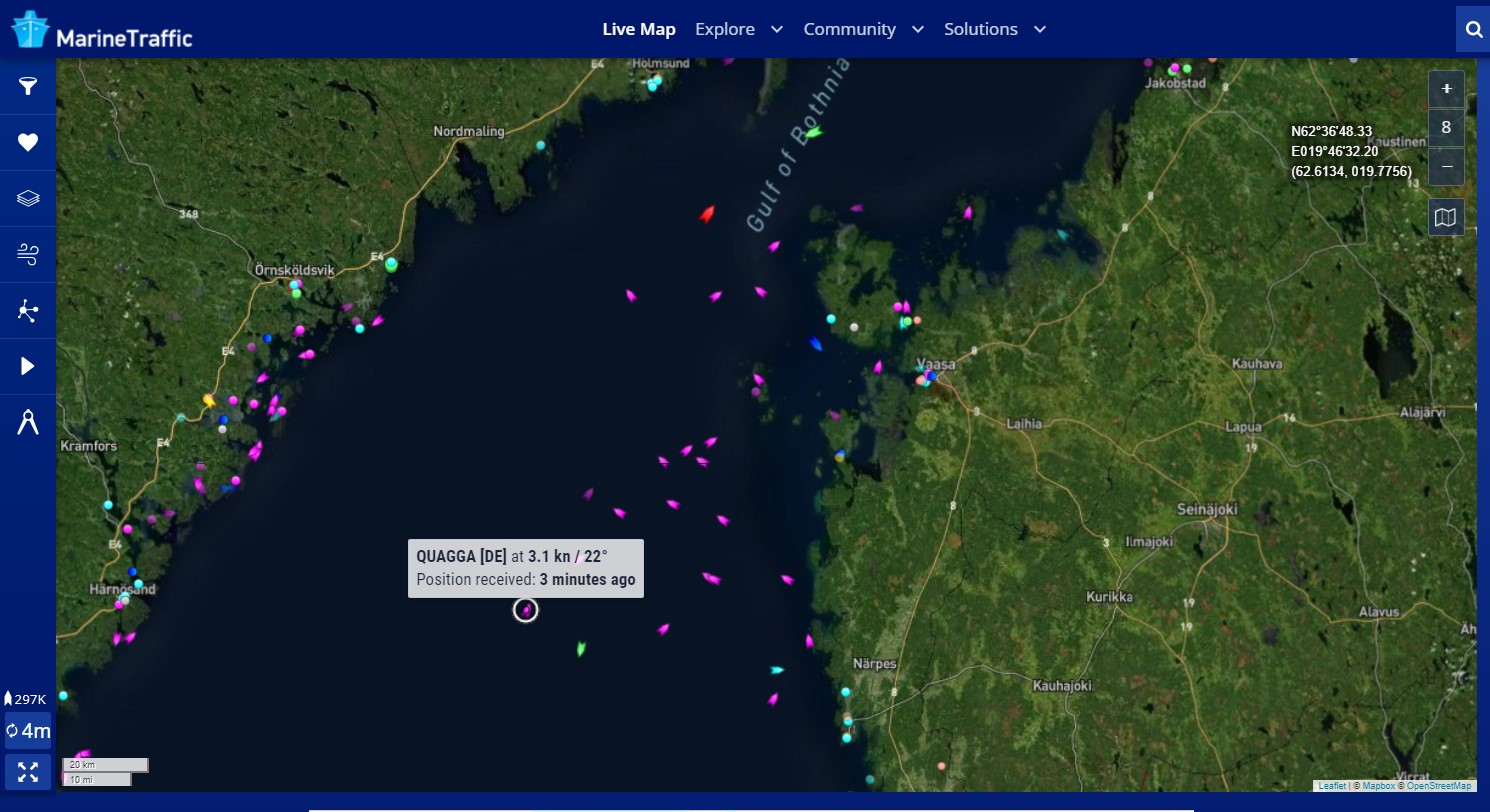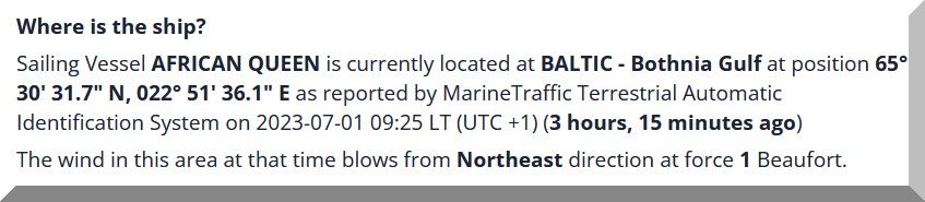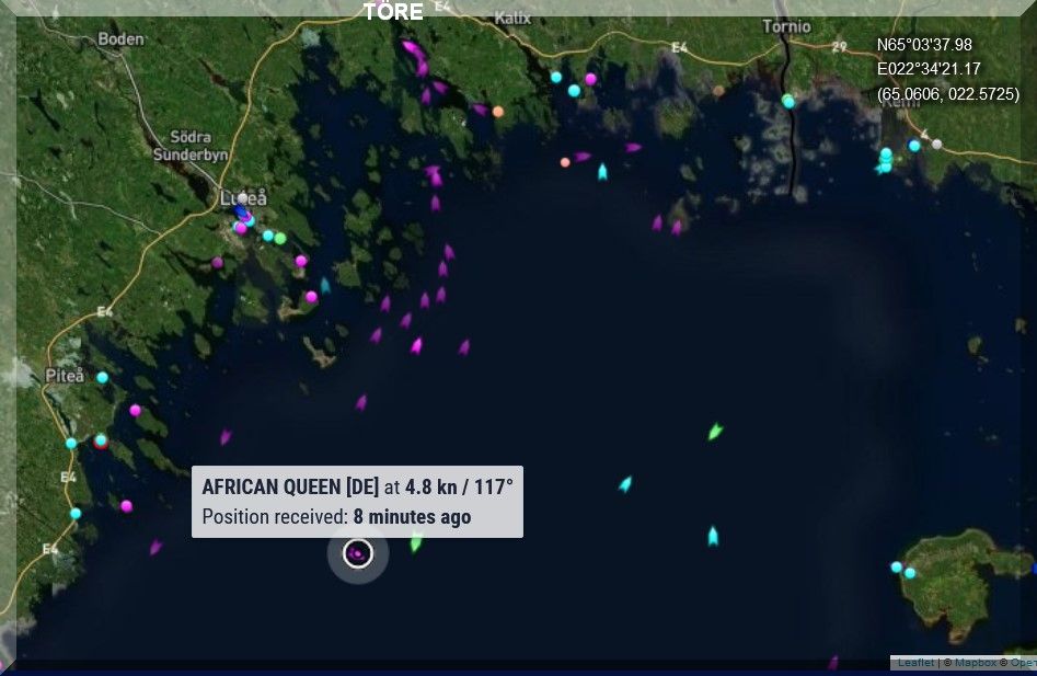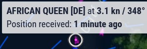 Mit MarineTaffic (r) konnte ich feststellen, dass sich Philipp mit seiner AFRICAN QUEEN bewegt hat.