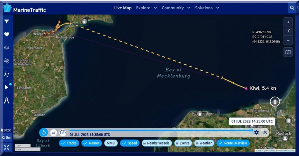 Das Rennen entpuppte sich dann als zäher Flautenpoker. Nach gutem Wind beim Start vor Wismar segelte das Feld schnell in den Hochdruck hinein und musste sich insgesamt 7 Tage, 2 Stunden und 3 Minuten durch drehende und immer wieder einschlafende Winde kämpfen. “Wir hatten enorm viele krasse Dreher und Windlöcher, ich glaube, wir hatten bestimmt dreimal exakt 0,0 Knoten Bootsspeed auf der Logge! Das Feld ist dann auch immer wieder von hinten rangefahren.” Obendrein war es vor allem ein Amwind-Rennen.