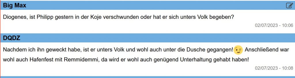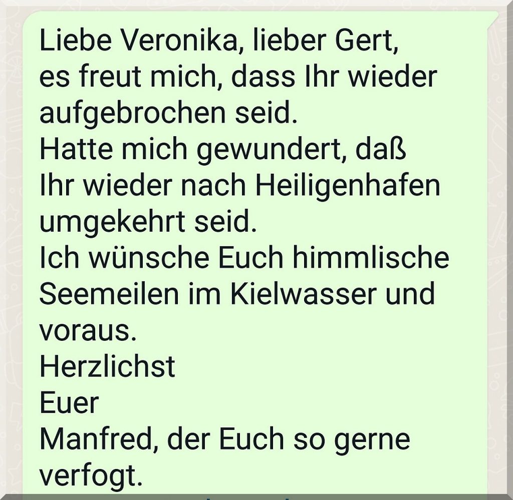 …….. Grüße von Carsten auf MS HARLEKIN: