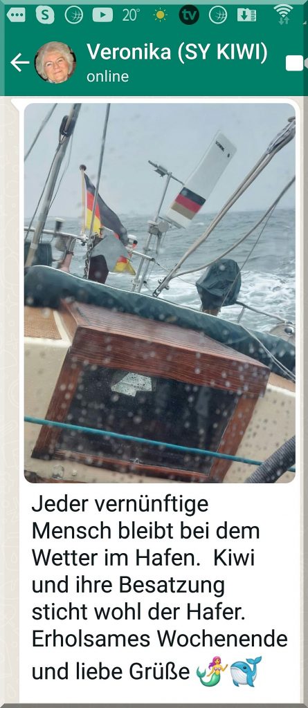 Z.Z. nur ca. 4 KN = 2Bft. Wind aus SW.