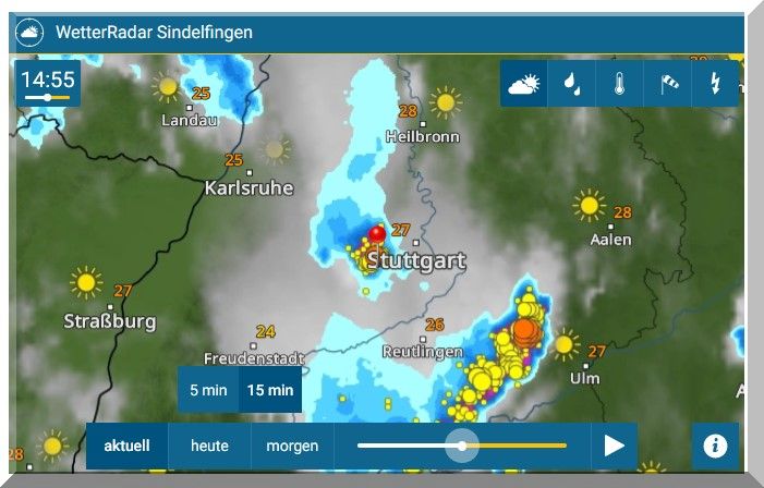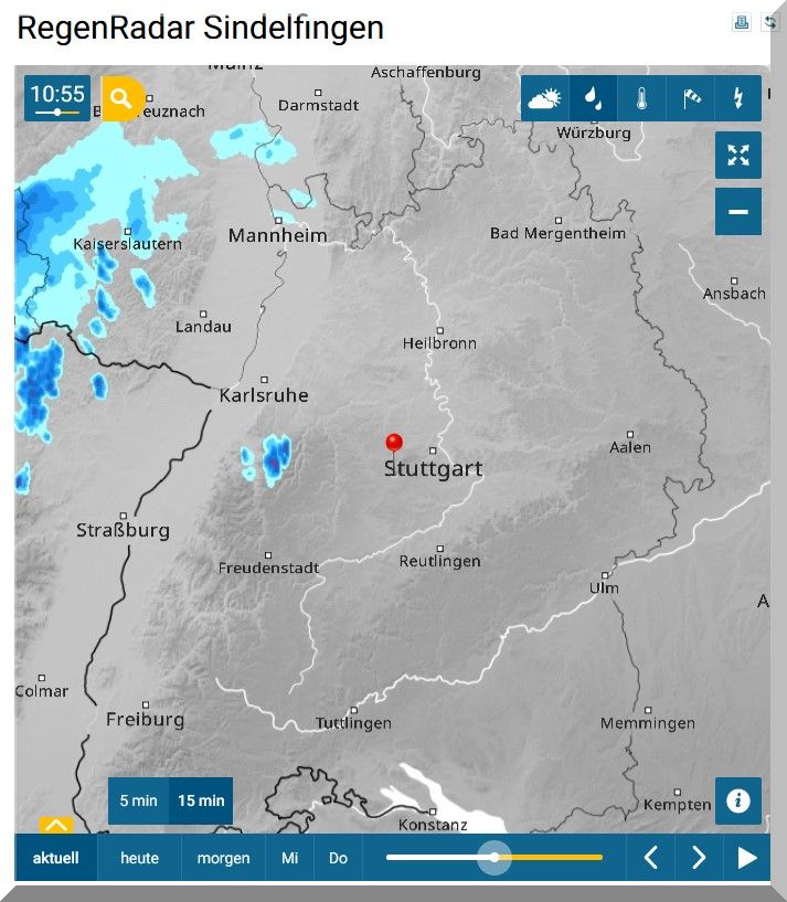 Das Regen-Radar ist besenrein, also steht meinem Rehaspaziergang nichts entgegen.