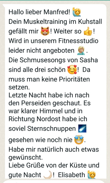 So nun erst einmal eine Nachlese aus den letzten Tagen. Ich freue mich immmer über die Grüße und Reaktionen: