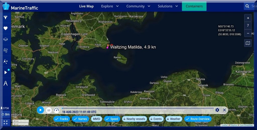 ……. aber wenigstens sehe ich, dass WALTZING MATILDA unterwegs ist – schön