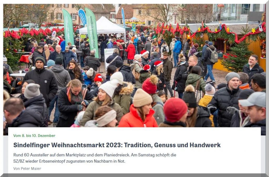 Auf dem Sindelfinger Marktplatz und auf dem Planiedreieck öffnet der diesjährige Weihnachtsmarkt seine Tore. Wie in den vergangenen Jahren von einem ehrenamtlichen Team „Weihnachtsmarkt Sindelfingen“ und zahlreichen ehrenamtlichen Helferinnen und Helfern veranstaltet, wird er am Freitagabend, 8. Dezember, um 18 Uhr, durch Oberbürgermeister Dr. Bernd Vöhringer feierlich eröffnet.