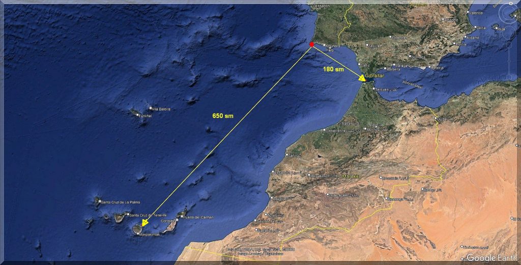 Nach Gran Canaria rd. 650 sm nach SW (~215°)
