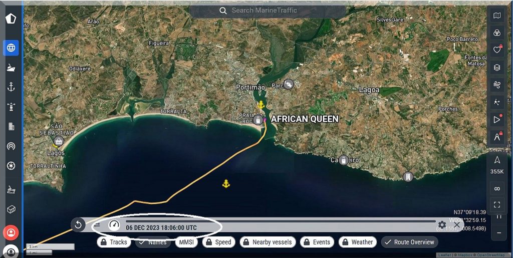 19:06 Uhr: Philipp ist im Hafen von Portimão/Portugal eingelaufen. Ich wünsche erholsamen Schlaf.