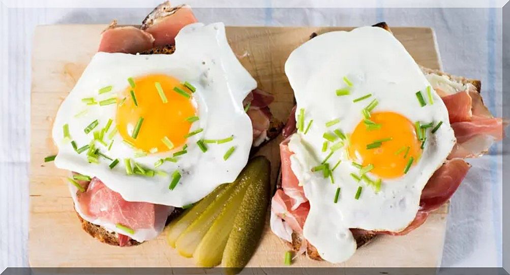 17 Uhr – Abendessen: Ich mache mir einen leckeren strammen Max und Marianne brät sich die restlichen Maccaroni von gestern auf und schlägt sich auch ein Ei darüber: