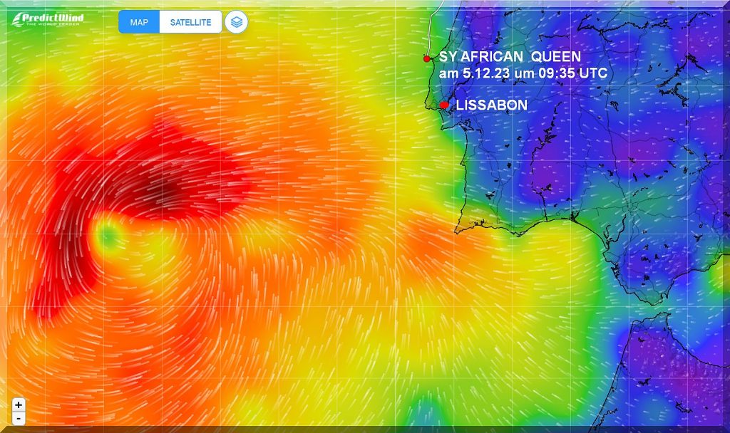 Philipp ist auf dem Weg nach Lissabon (im Moment noch ca. 65 sm), bevor ihn das nächste Tief erreicht: