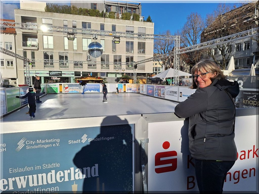Wir machen einen City-Rundgang und schauen am Grünen Platz bei der Kunststoff-‚Eisbahn‘ vorbei.