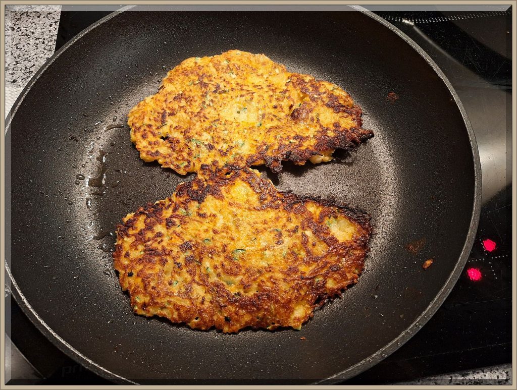 17 Uhr – Zum Abendessen gibt es mit Pollo, Paprika, Zwiebeln, Käse und Bechamelsoße gefüllte Kartoffeln – alles mit Parmesan überbacken. Ich gönne mir dazu ein Viertele Spätburgunder Rotwein: