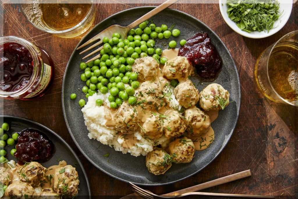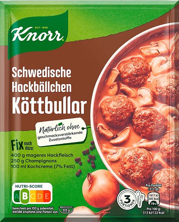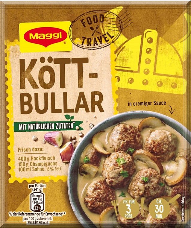 Zum Abendessen wird es Köttbullar (in Köttbullar-Fix von Maggi) mit Preiselbeeren, Erbsen und frischer Kartoffelbrei geben: