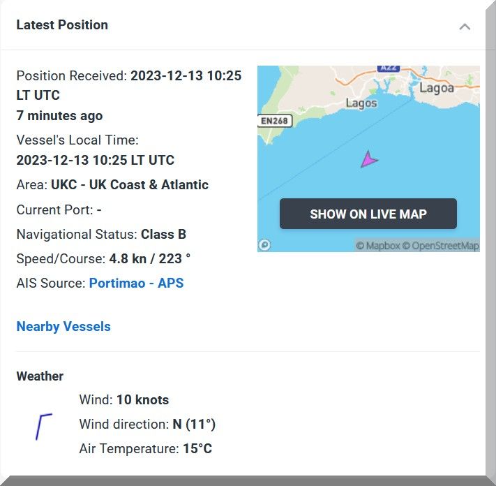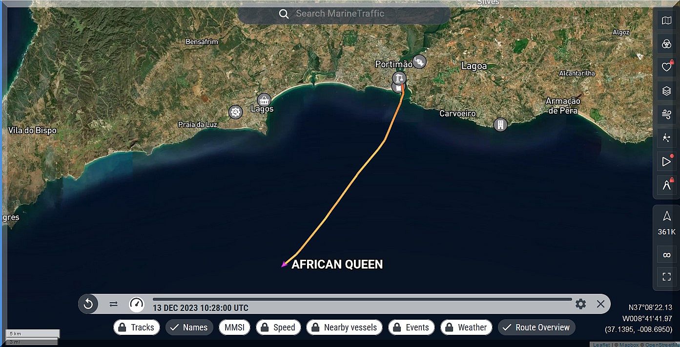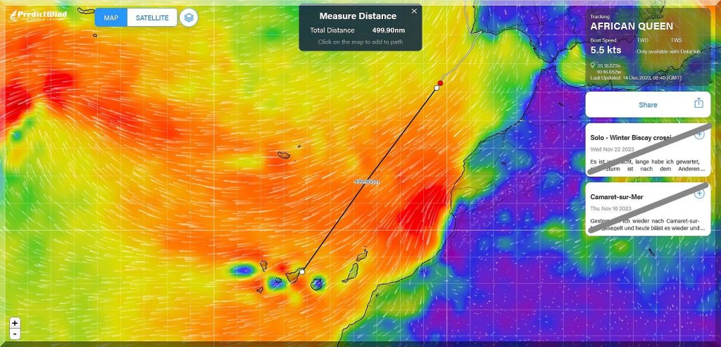 Philipp hat um ca. 7:30 UTC Portimão mit Kurs zu den Kanarischen Inseln verlassen: