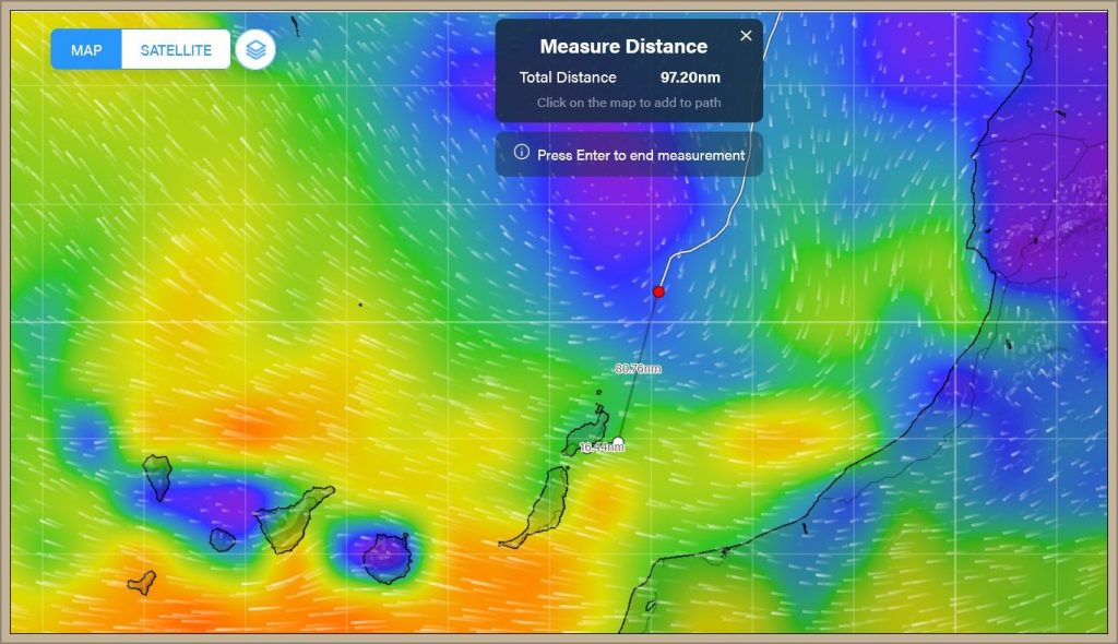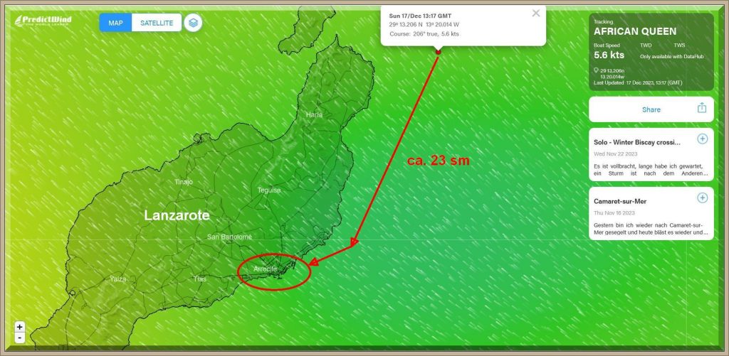Nun kann Philipp schon Lanzarote voraus sehen. Bis ins Ziel bei Arrecife sind es nun nur noch ca 23 sm.