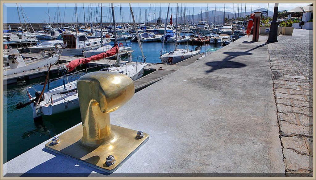 Nostalgische Erinnerungen: Die mächtigen Hafenpoller in Puerto Calero waren in 2005, als wir dort unseren Chartertörn um die Kanarischen Inseln begannen, rein von Gold.