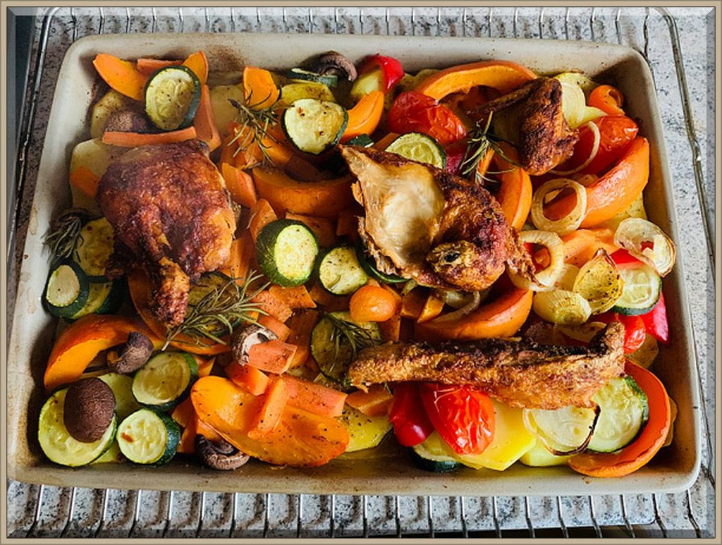 17 Uhr – Zum Abendessen gab es Backofengemüse mit Pollo fino: