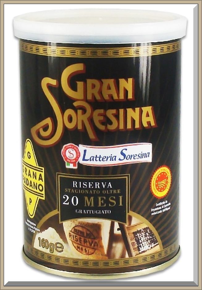 Durch eine Reifung von über 20 Monaten erhält der „Grana Padano Riserva“ von Soresina seinen einzigartigen und authentischen Geschmack. Dank seiner wiederverschließbaren Dose wird der Geschmack besonders lange erhalten. Hervorragend eignet sich der geriebene Grana Padano Riserva zur Verfeinerung jeder Art von Nudelgerichten sowie für Risotto oder Gemüse. Einfach ein Genuss!