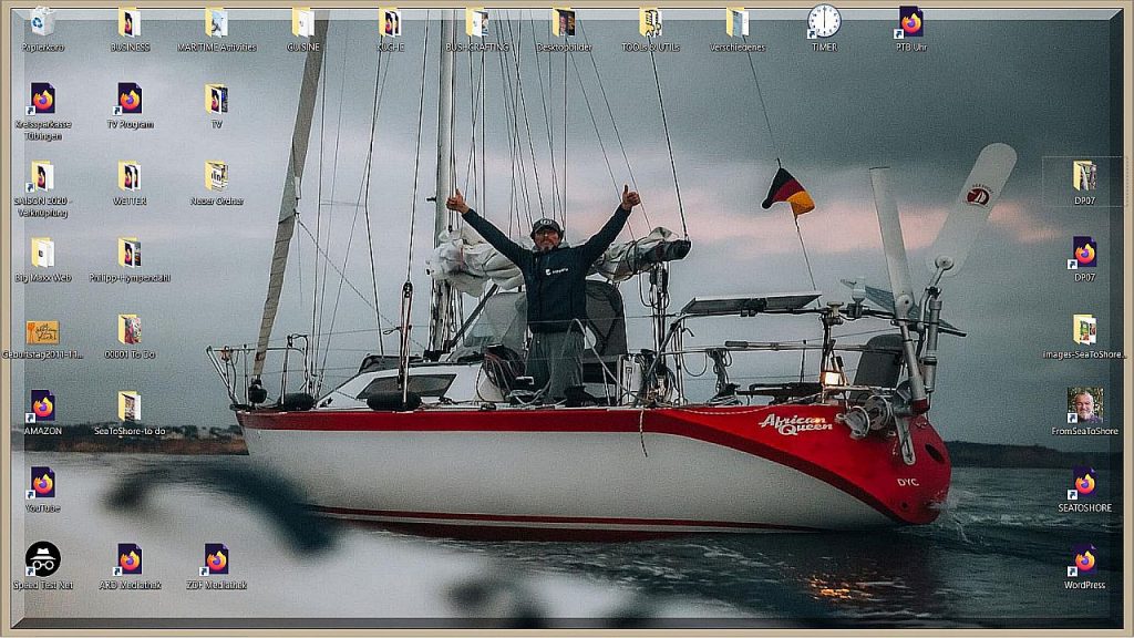 Was man vorstehend sehen kann, war für mich unbezahlbar, aber es ging ja auch mit Notebook, Tablet, Smartphone, GPS-Empfänger und bei mir noch zusätzlich mit einem 8″-Kartenplotter, VHF und AIS-Transponder.