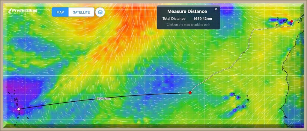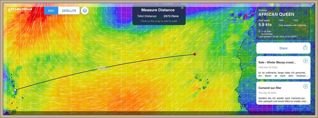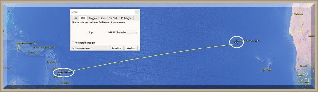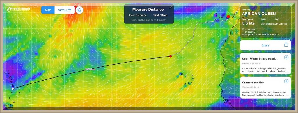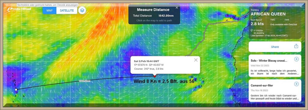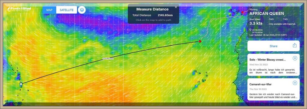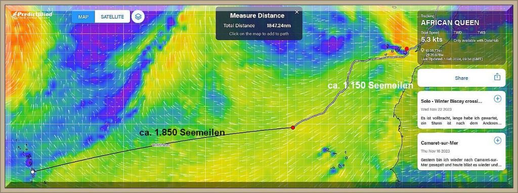 unter die 2000 sm – Marke gerutscht, d.h. daß er seit Las Palmas auf Gran Canaria bereits 1000 sm