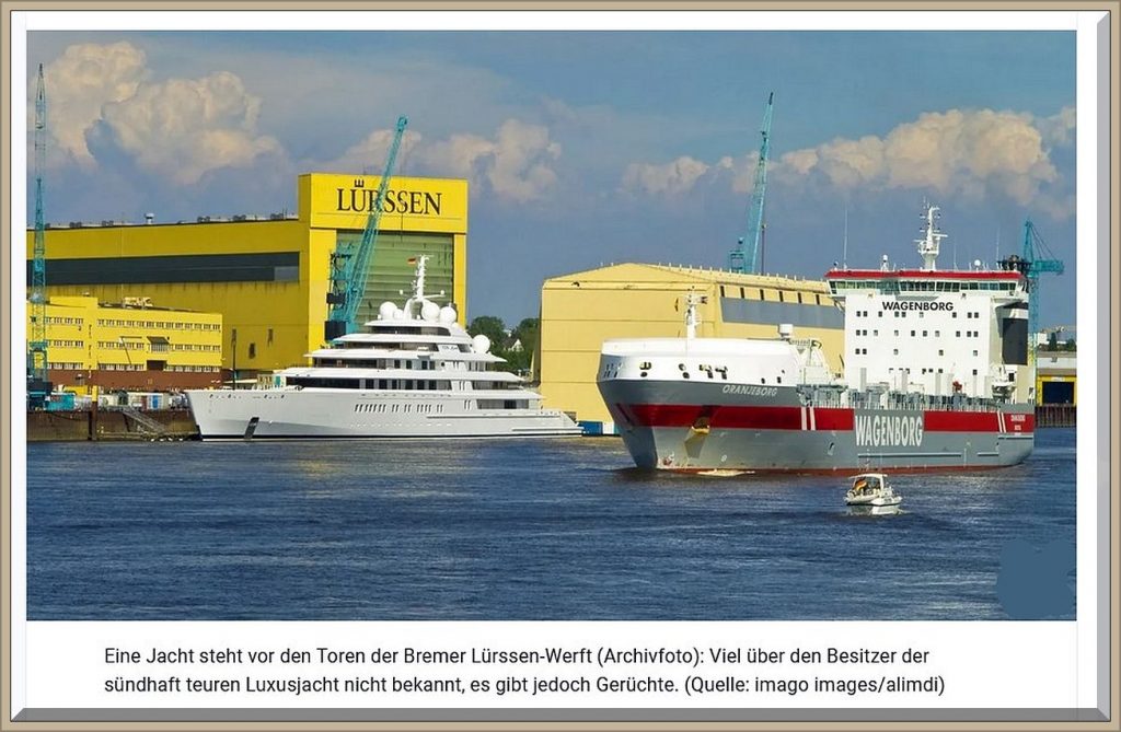 Ein neues Luxusspielzeug der Lürssen-Werft ist fertig. Das riesige Schiff verließ das Dock in Bremen und ist auf dem Weg nach Norwegen. Wem gehört sie?