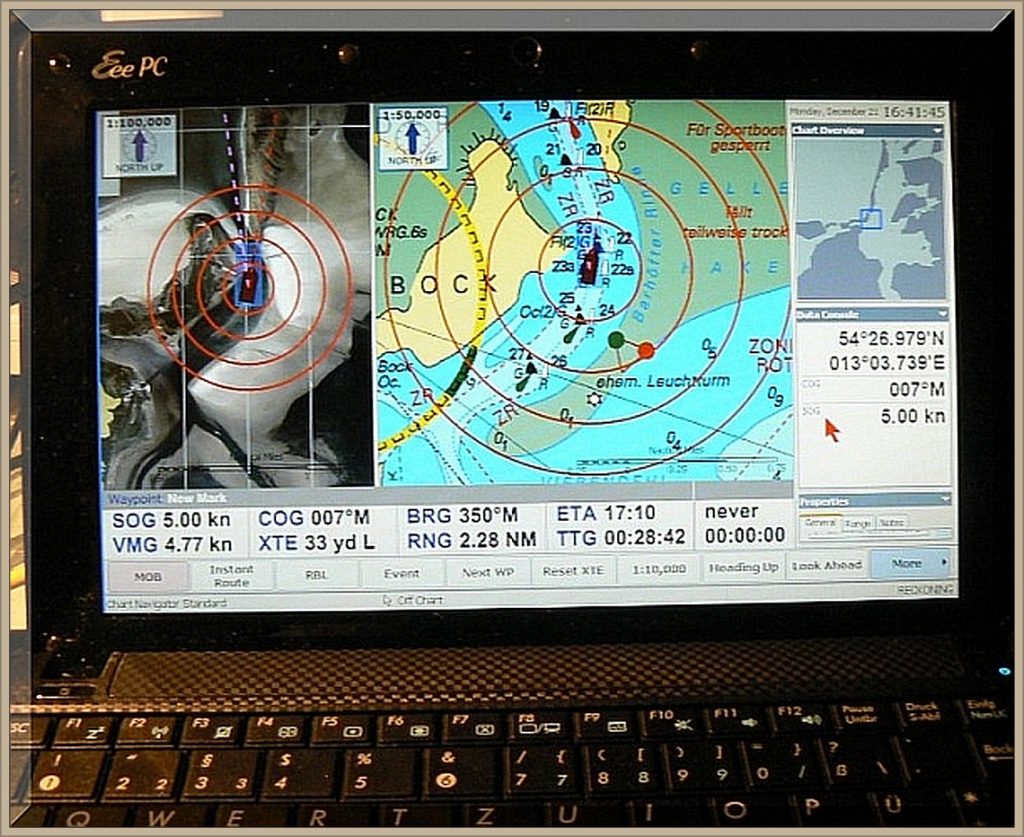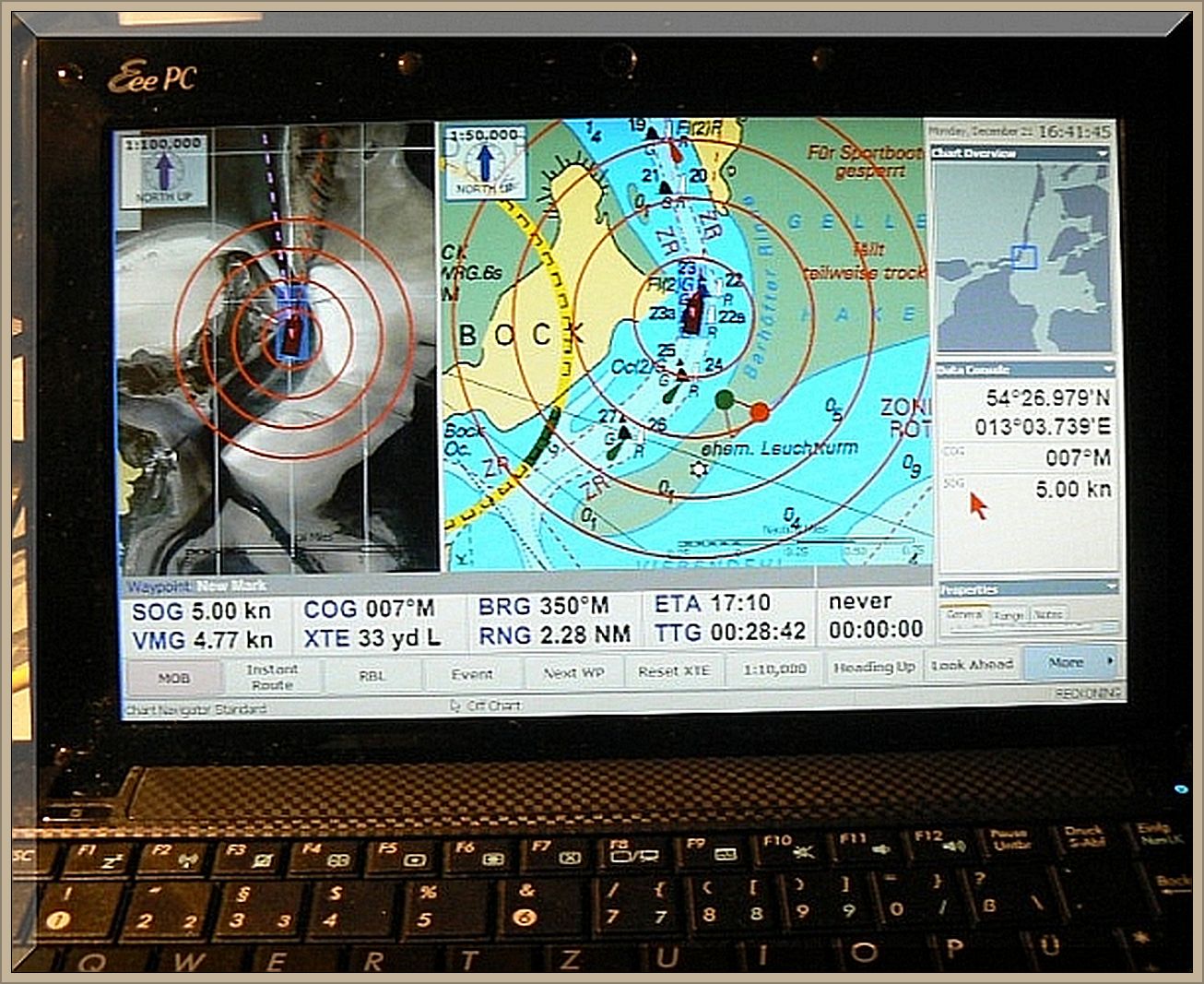 Wenn ich nun alles auf einem 17.3″ Monitor realisiere, dann wäre ich zufrieden, auch wenn ich es in der Praxis nicht mehr anwenden werde. Aber vielleicht kann ich ja noch den einen oder anderen jungen Segler damit eine Anregung zur preiswerten elektronischen Navigation anbieten.
