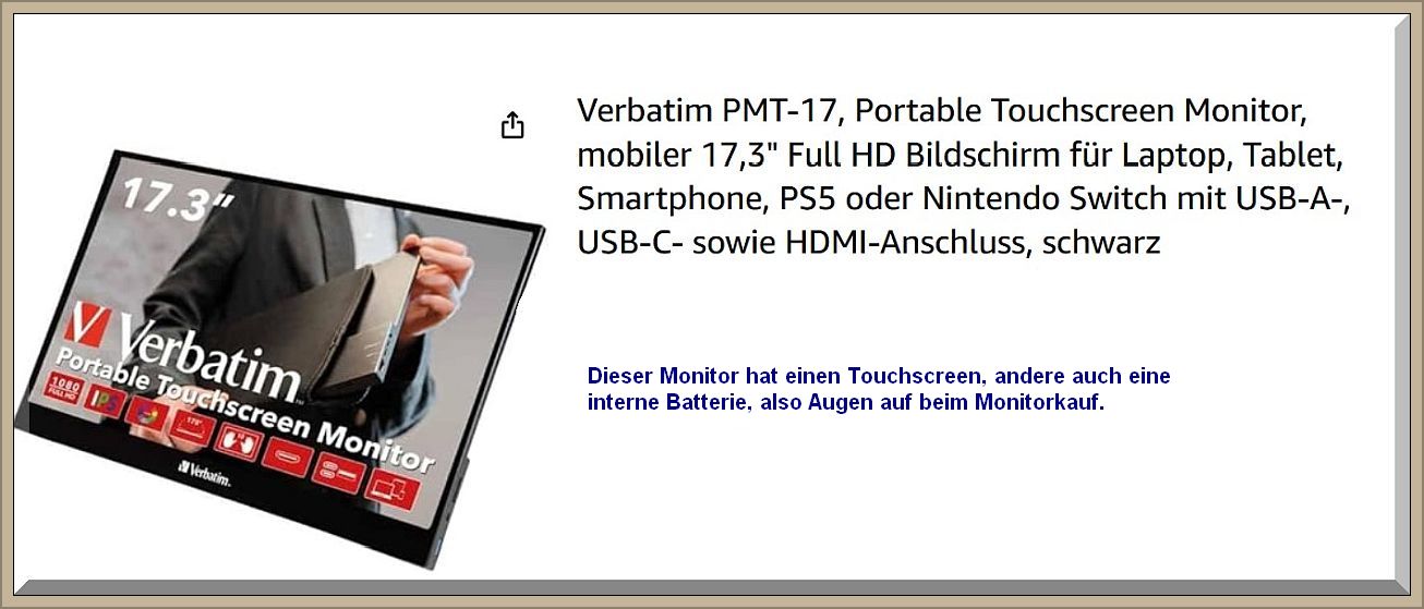 Wenn ich mir demnächst einen Monitor zugelegt haben werde, dann werde ich das alles erst einmal mit meinem Smarthone als CPU ausprobieren, denn das wäre die eleganteste Lösung.