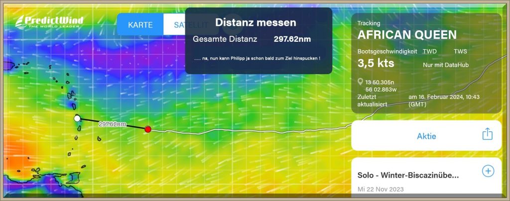 10:43 GMT = 11:43 Uhr MEZ und Philipp hat nur noch rd. 180 sm vor sich.