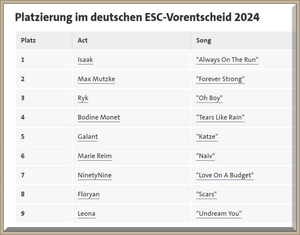 22:20 Uhr – Ich schaue mir noch die Deutsche Endausscheidung unseres Songs für den ESC in Malmö an.