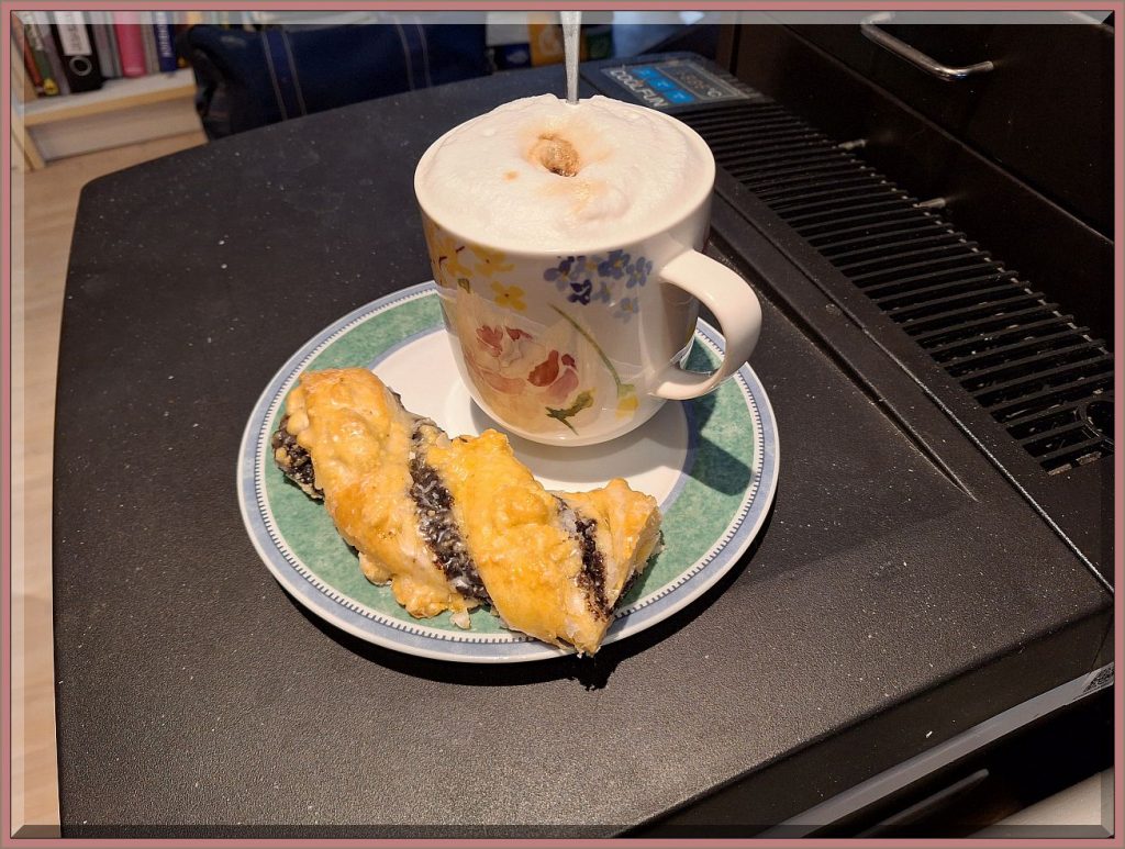 In Ermangelung von Asbach-Uralt habe ich mich mit einem edlen Schümli und einem halben Mohnstriezel verwönt.