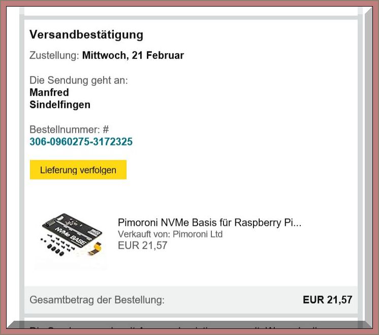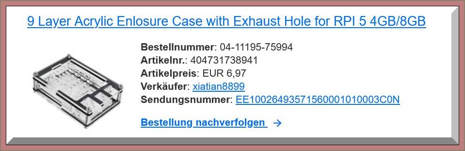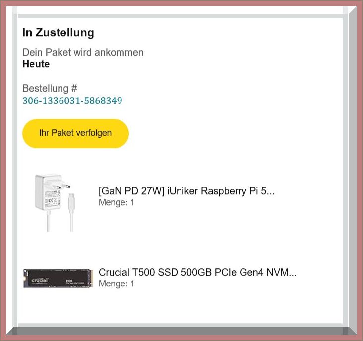 Alle Versandbestätigungen zum Raspberry Pi 5 u. Zubehör sind da:
