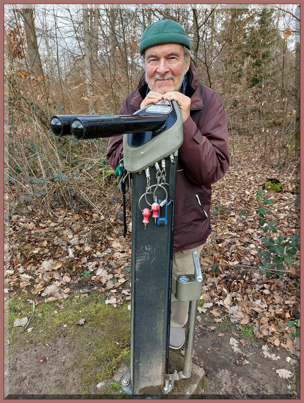 Am Eingang zum Waldspaziergang stand eine Servicesäule für Radfahrer, versehen mit einer Luftpumpe und typischem Fahradwerkzeug (ich wollte mich auch ein wenig reparieren, fand aber nicht das passende Werkzeug zum Verjüngen).