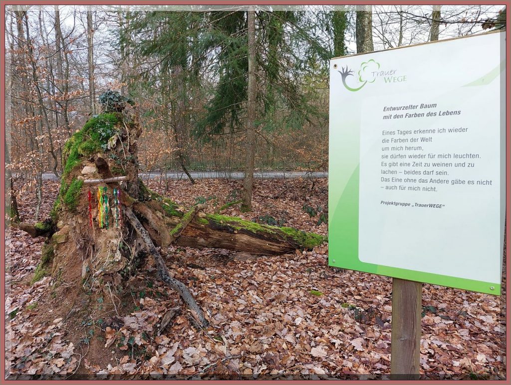 Anschließend sind wir noch über den dortigen, weitflächigen Waldfriehof gelaufen, der eine ganz besondere Ruhe ausstrahlte und auch über mehrere Baumgrabanlagen verfügte ( je 6 Urnen um einen Baumstamm).