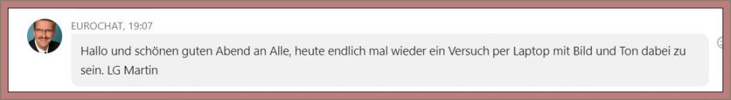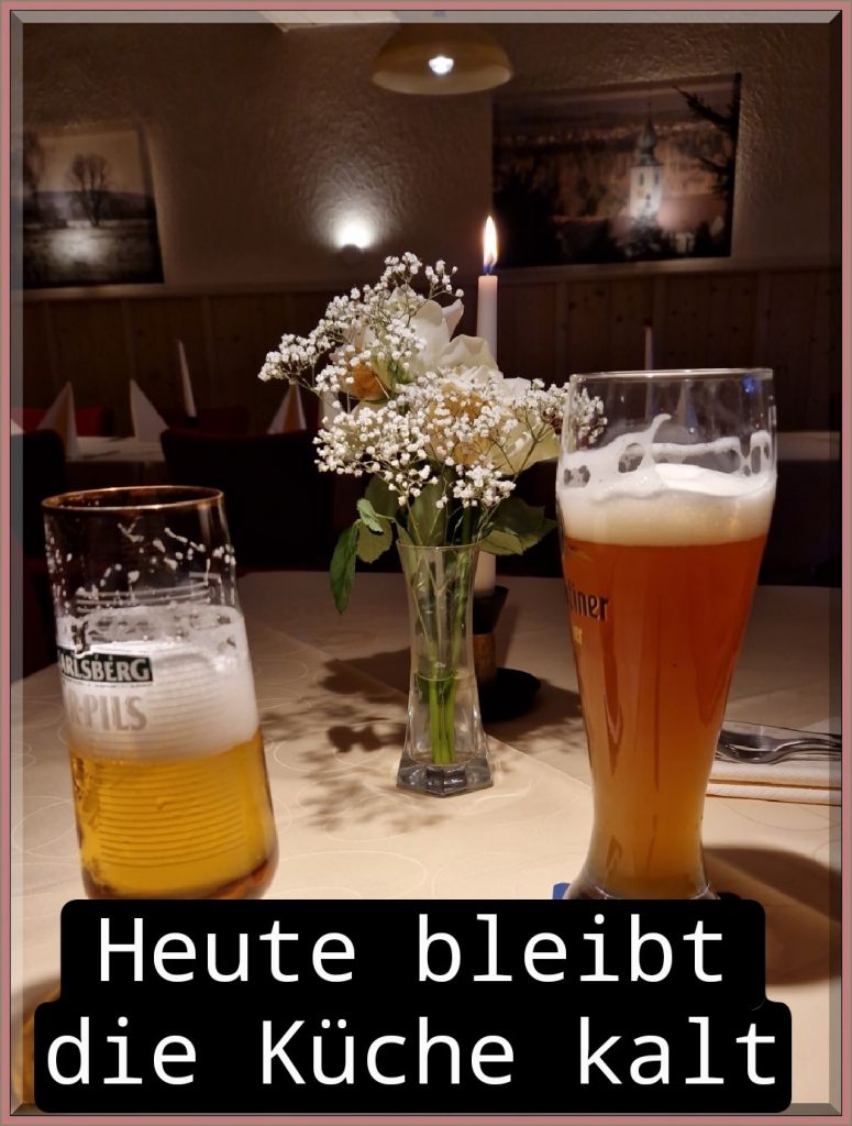17:30 Uhr – Abendessen: Wir hatten gestern 2 Kohlrouladen mit Hackfleisch beim Metzger gekauft und heute gebraten und mit Salzkartoffeln verzehrt. Wir waren angenehm überrascht, wie gut die Rouladen geschmeckt haben. Mir schmecken Mariannes Kohlrouladen jedoch bedeutend besser, denn sie füllt sie mit Rinderhack und umwickelt sie mehrlagig.