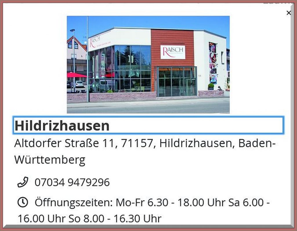 Das war wieder ein schöner und besinnlicher Ausflug. Zum Abschluß sind wir diesmal nicht bei Sehne eingekehrt, sondern im Café der Bäckerei Raisch in Hildrizhausen, wo ich ein herrliches Stück einer Schwarzwälder-Kirschtorte erhaschen konnte.