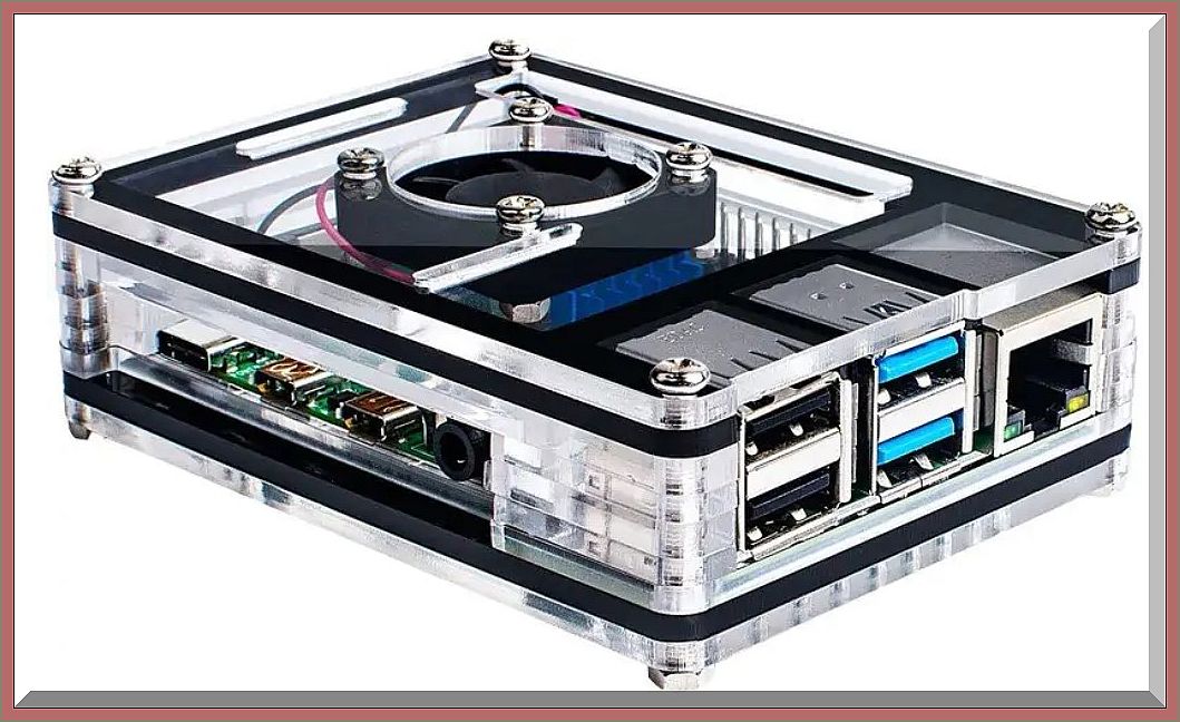Auch eine nette Kombination: Den Raspberry Pi 5 einfach Huckepack auf die Rückseite des Monitors oder Tablets verfrachten, natürlich (elektrisch) geschützt im Acryl-Case: