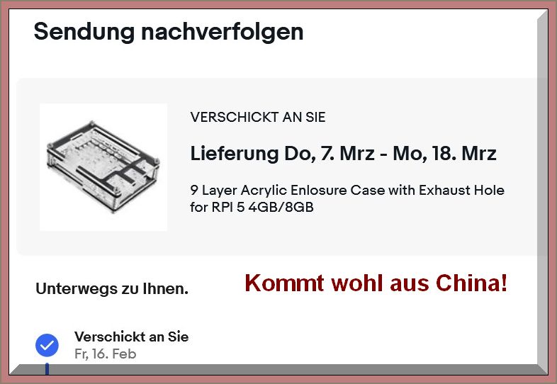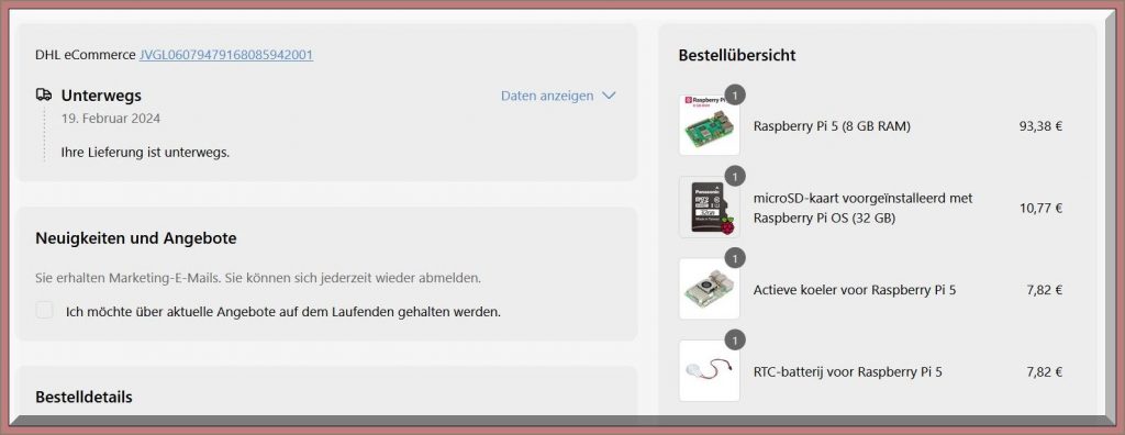 Fehlt nur noch der Raspberry Pi 5 aus dem Verteilungszentrum in Holland.