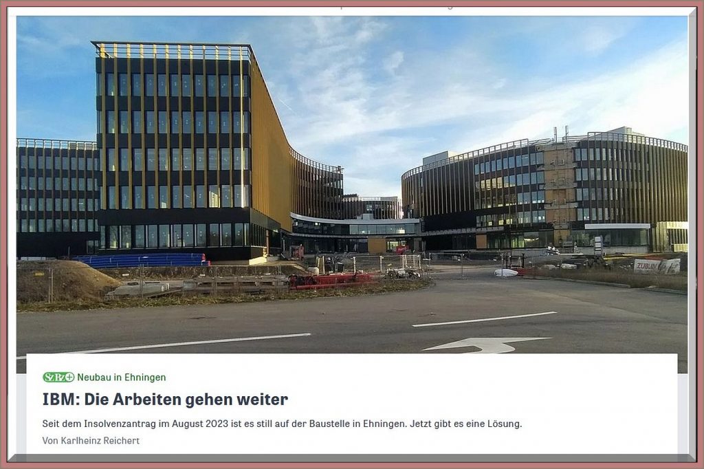 Die Arbeiten am Neubau der IBM in Ehningen sollen demnächst weiter gehen. Das teilte die insolvente Development Partner GmbH (Düsseldorf) am Mittwoch schriftlich mit.
