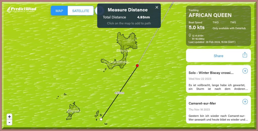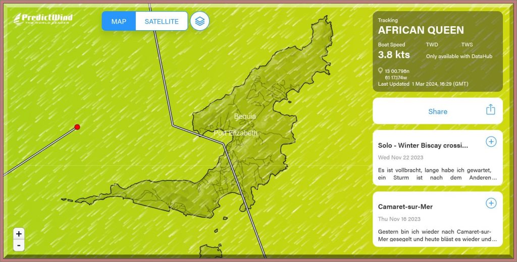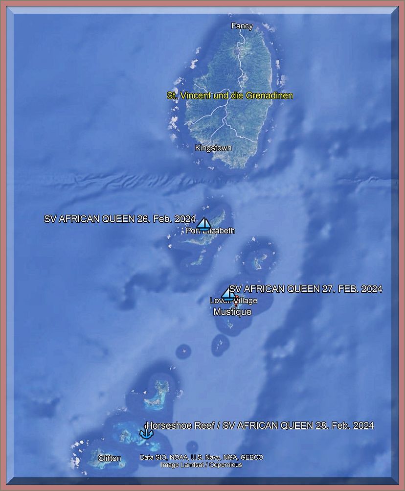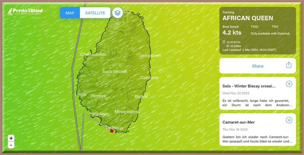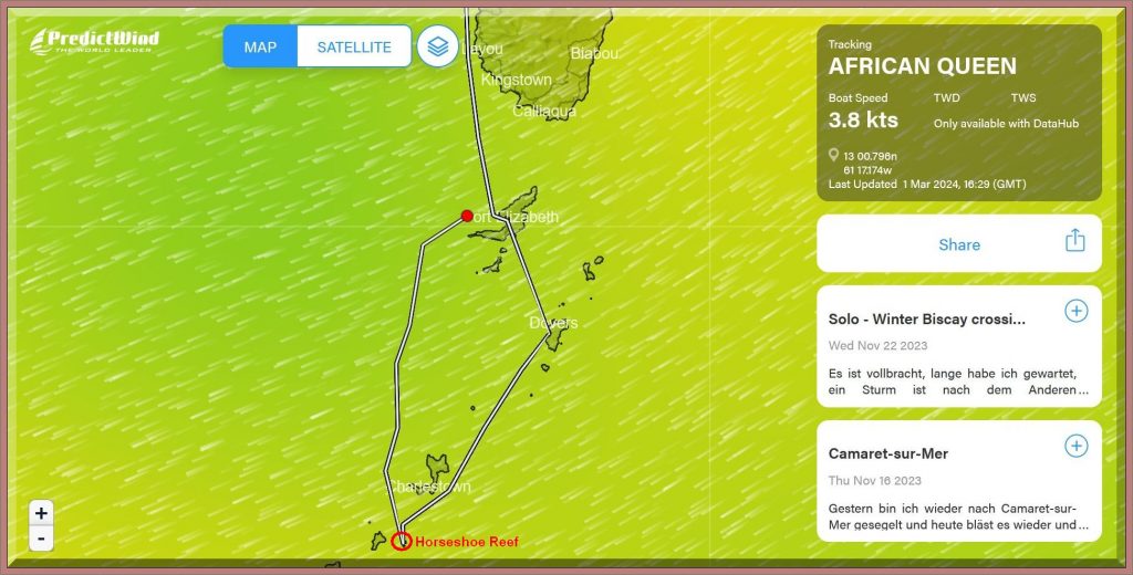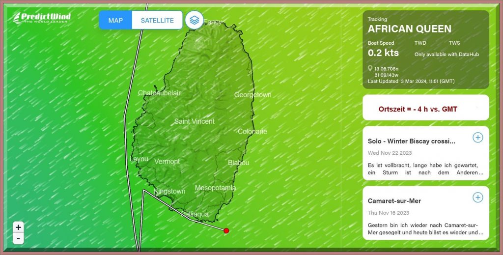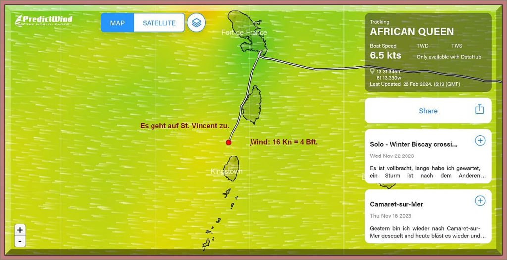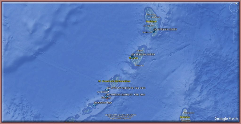 Philipp ist an der Südspitze von Saint Vincent zeitig aufgebrochen. Welches Ziel er anpeilt entzieht sich noch meiner Vorstellung. Heute Abend werde ich wissender sein: