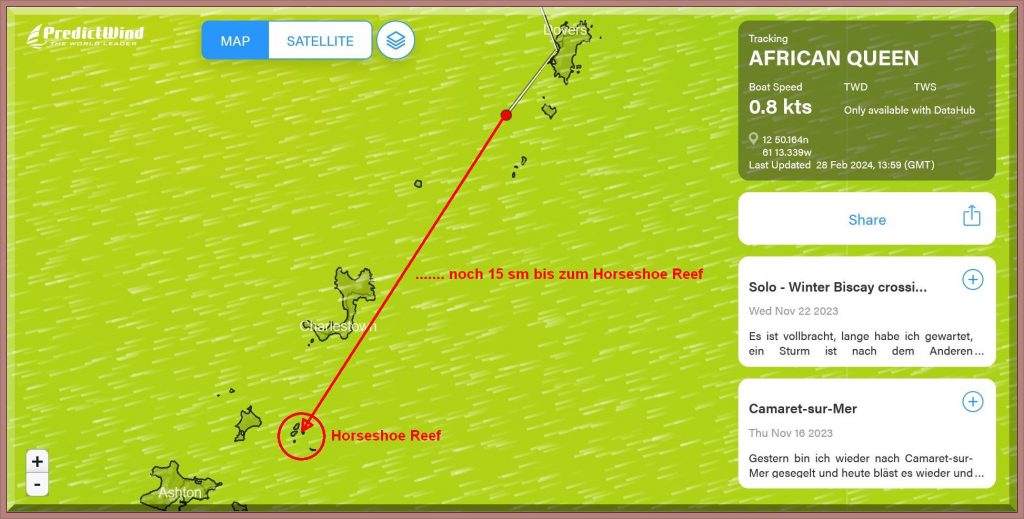 Philipp hat das Horseshoe Reef bereits wieder verlassen und den ‚Rückwärtsgang‘ nordwärts eingelegt.