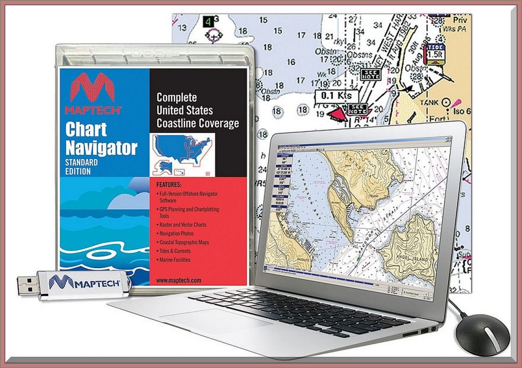 Ich kaufte mir damals 5 Maptech Chart Kit Atlanten in Papierform und digital auf CD. Nach der Installation der Maptech Chart Navigator Software habe ich meinem Garmin 45 GPS-Empfänger an einem seriellen Port im Simulationsmode an den IBM PS1 zugeschaltet und konne mich zu jedem Punkt der Erde beamen und dort Kurs und Speed wählen und herumfahren (segeln). Davon war ich so begeistert, dass ich, sobald ich mein erstes Notebook besaß (1996), die elektronische Navigation bei mir an Bord einführte und von mir ständig up to date gehalten wurde.