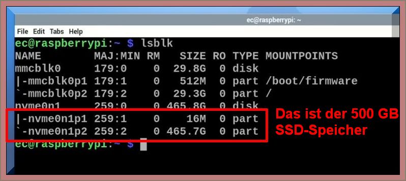 15 Uhr – Weiter geht’s mit Linux. Jetzt möchte ich endlich erreichen, dass mein Raspberry Pi 5 vom NVME Speicher (500 GB) bootet.