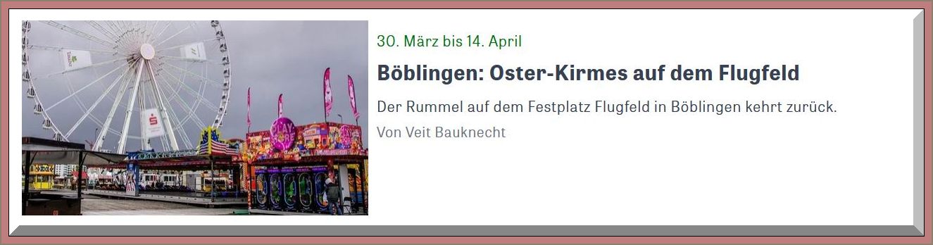 Böblingen. Nach der Premiere im letzten Jahr startet die Kirmes am Samstag, 30. März in die nächste Runde und lädt bis zum 14. April zum Bummeln und Feiern ein.