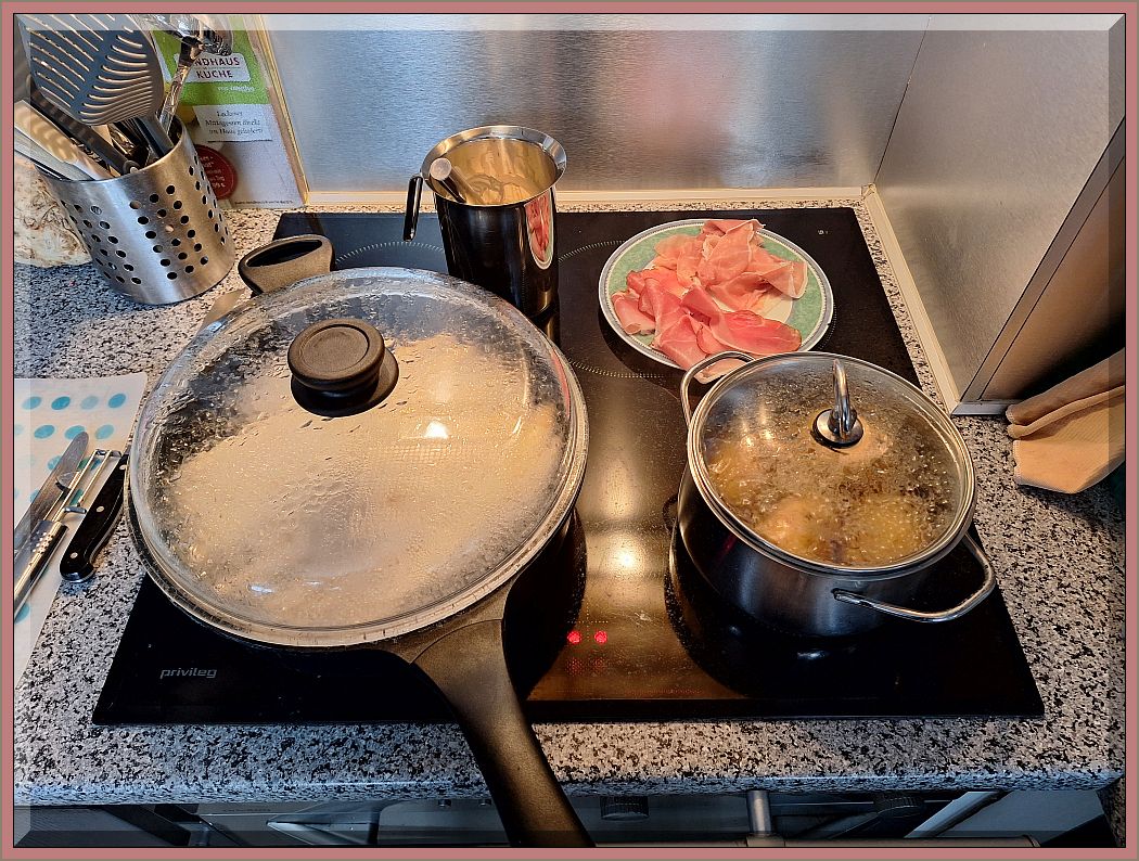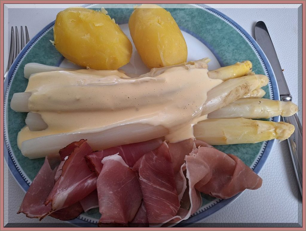 Es hat um 10 Uhr angefangen heftig zu regnen. Trotzdem werden wir uns gleich auf unsere Einkaufsrunde begeben. Um 13:45 Uhr wieder daheim. Wir haben Deutschen Spargel bei ALDI für 14,90 €/Kg bekommen. Den hatten wir kürzlich schon einmal und waren sehr zufrieden.